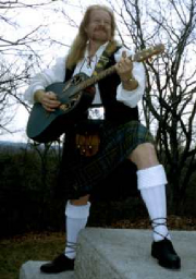 * Don P. Scobie, Highland bagpiper - Visit Don's delightfully wacky web site, read about his exciting debut solo album, and how you could advertise on his shaved noggin! http://www.bagpiperdon.com Editors note: You haven't heard the theme from Star Wars until you've heard Don play it on the great highland pipes! He's a very imaginative, and inventive piper. * Nae Regrets - Celtic/Fusion/Experimental: "The band formerly known as Circle of Stone". Don Scobie on pipes and Anthony on drums have brought their band out of hiatus and renamed it "Nae Regrets". The same great, innovative sounds with a new name.